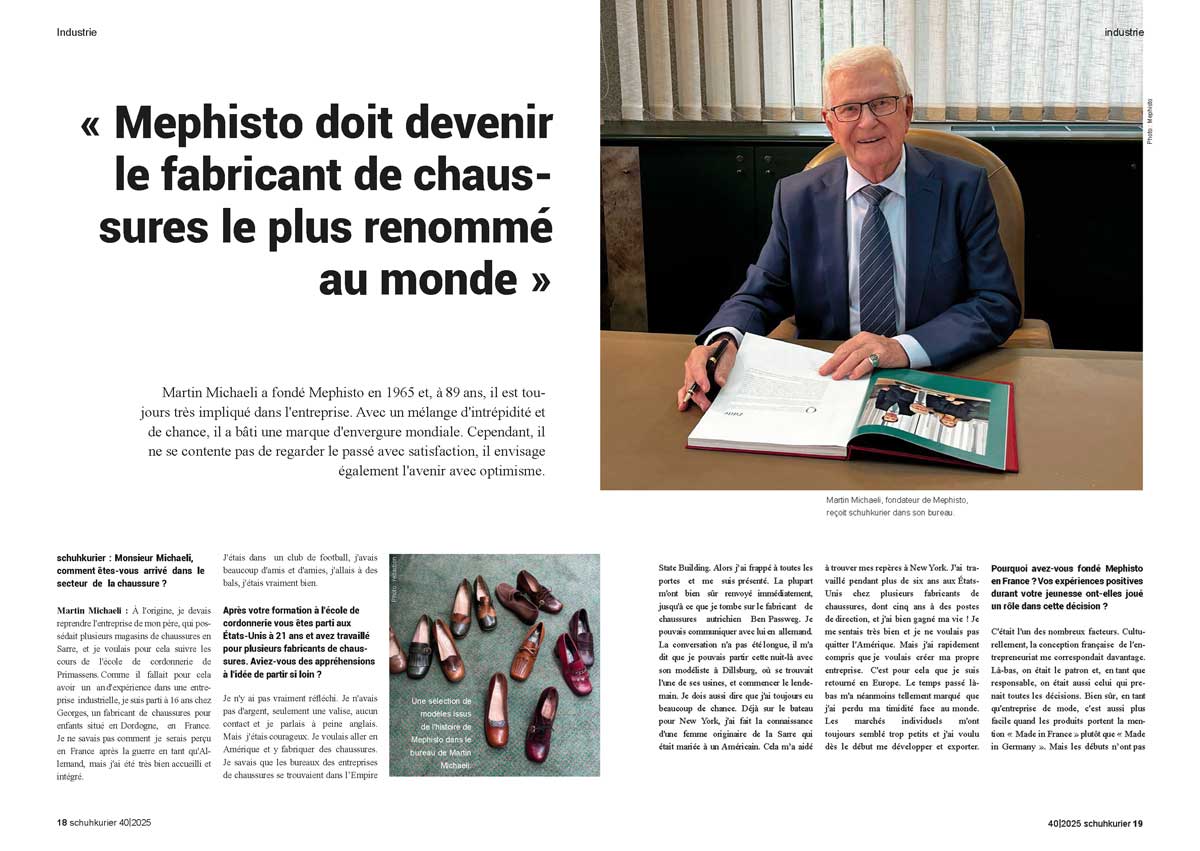 Un article publié en septembre 2025 dans le magazine allemand SCHUHKURIER, offrant un aperçu personnel de la vie professionnelle de Martin Michaeli et du développement de la marque MEPHISTO.